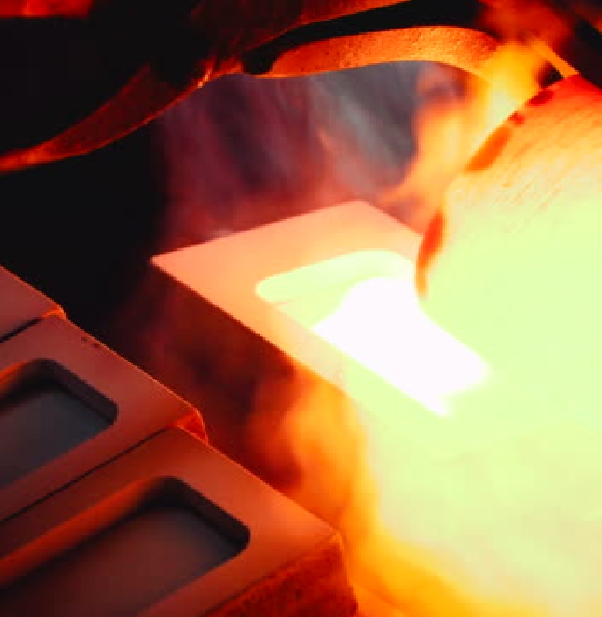 - Yellow, bright, relatively soft, solid metal at room temperature.